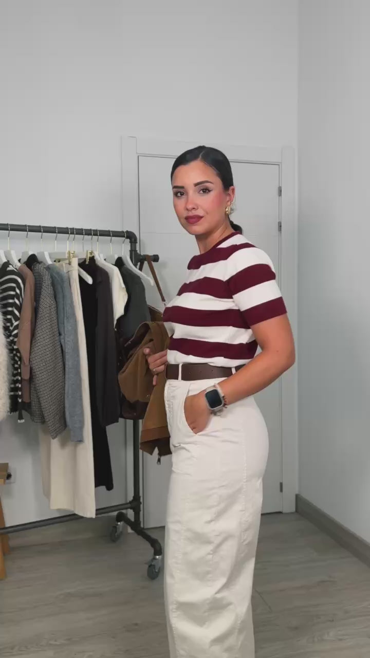 Camiseta de rayas horizontales con cuello redondo y manga corta.