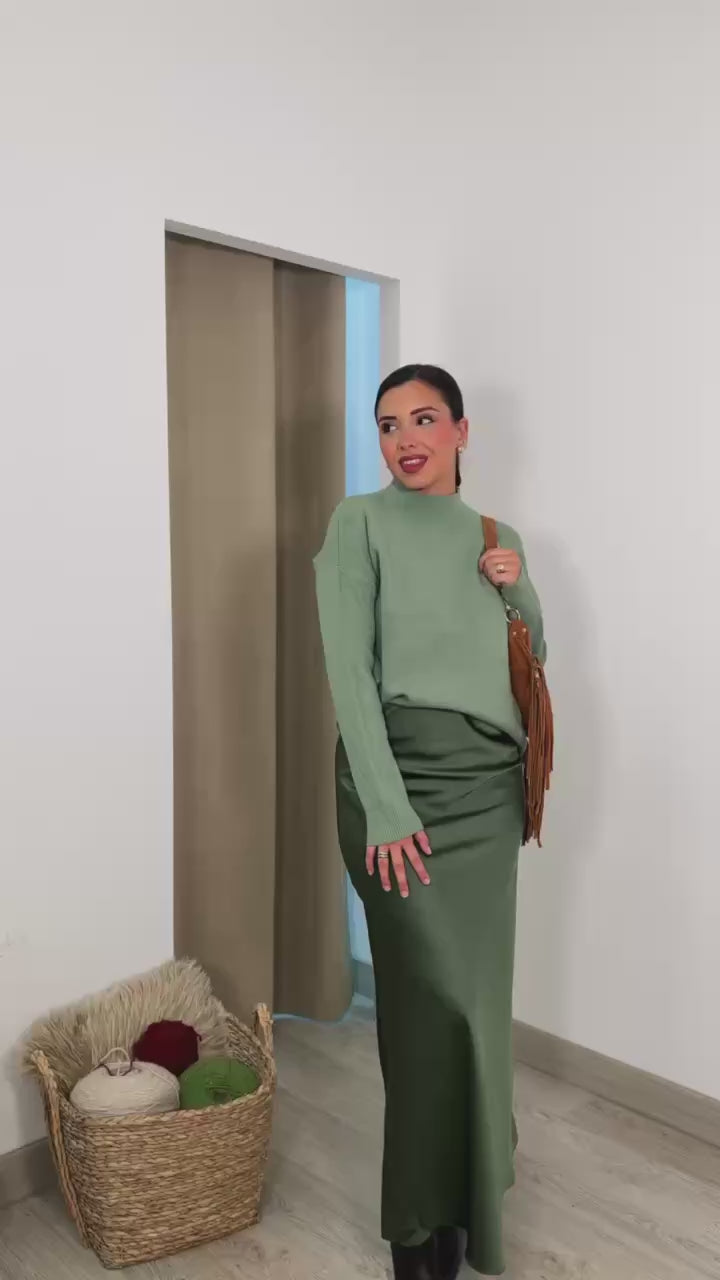 Jersey de manga larga con cuello alto y acabado acanalado.